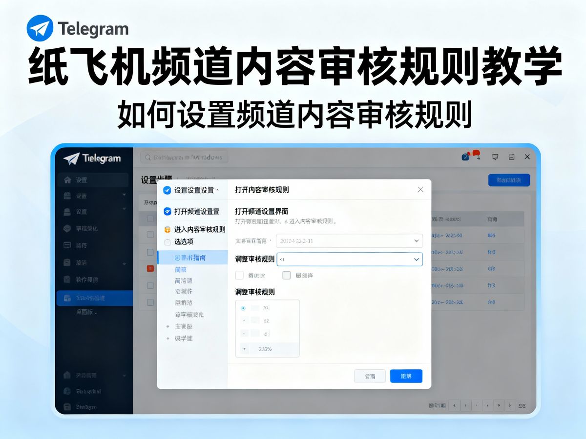 摘要:随着Telegram桌面版(Windows)的普及,纸飞机频道(Telegram频道)的内容审核成为用户和管理员关注的焦点。本文旨在系统介绍纸飞机频道内容审核规则教学,帮助用户更好地理解平...
